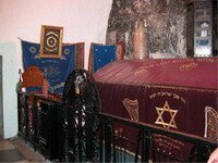 Большой каменный саркофаг накрыт покрывалом, на котором установлены короны свитков Торы, символизирующие 22 израильских царства, и вышиты слова из I Книги Царств: «Давид, царь Израиля, жив и существует»