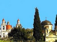 Место почитается христианами еще с византийских времен. Уже тогда на склоне горы стояла церковь. Современный храм был построен в 1937 году по проекту итальянского архитектора Берлуччи. Вокруг храма разбит чудесный сад.