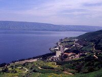 Киннерет Озеро в окружении гор напоминает по форме "Кинор" - древний музыкальный инструмент - отсюда и название - Киннерет. Длина озера - 21 км, ширина - 12 км, глубина - до 45 метров. Озеро находится в Нижней Галилее и потому называется еще Галилейским морем.