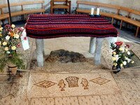 Табха Название произошло от греческого "Гептабехон" - семь источников, которые вливаются здесь в Галилейское море. На прибрежной скале Иисус, явившийся ученикам своим после Воскресения, разделил с ними трапезу. Эту скалу называют Табула Домини (стол Господень) или Менза Христи (трапеза Христа). Монахи-францисканцы построили на ней часовню. Рядом находится храм Приумножения рыб и хлебов, построенный в 1882 году католиками - бенедиктинцами на фундаменте церкви IV века. Древняя мозаика почти полностью сохранилась. Она поражает красотой и изысканностью и, спустя века, является главным украшением храма. На этом месте Иисус насытил много тысяч человек пятью хлебами и двумя рыбами. Они изображены на древней мозаике в алтаре храма.